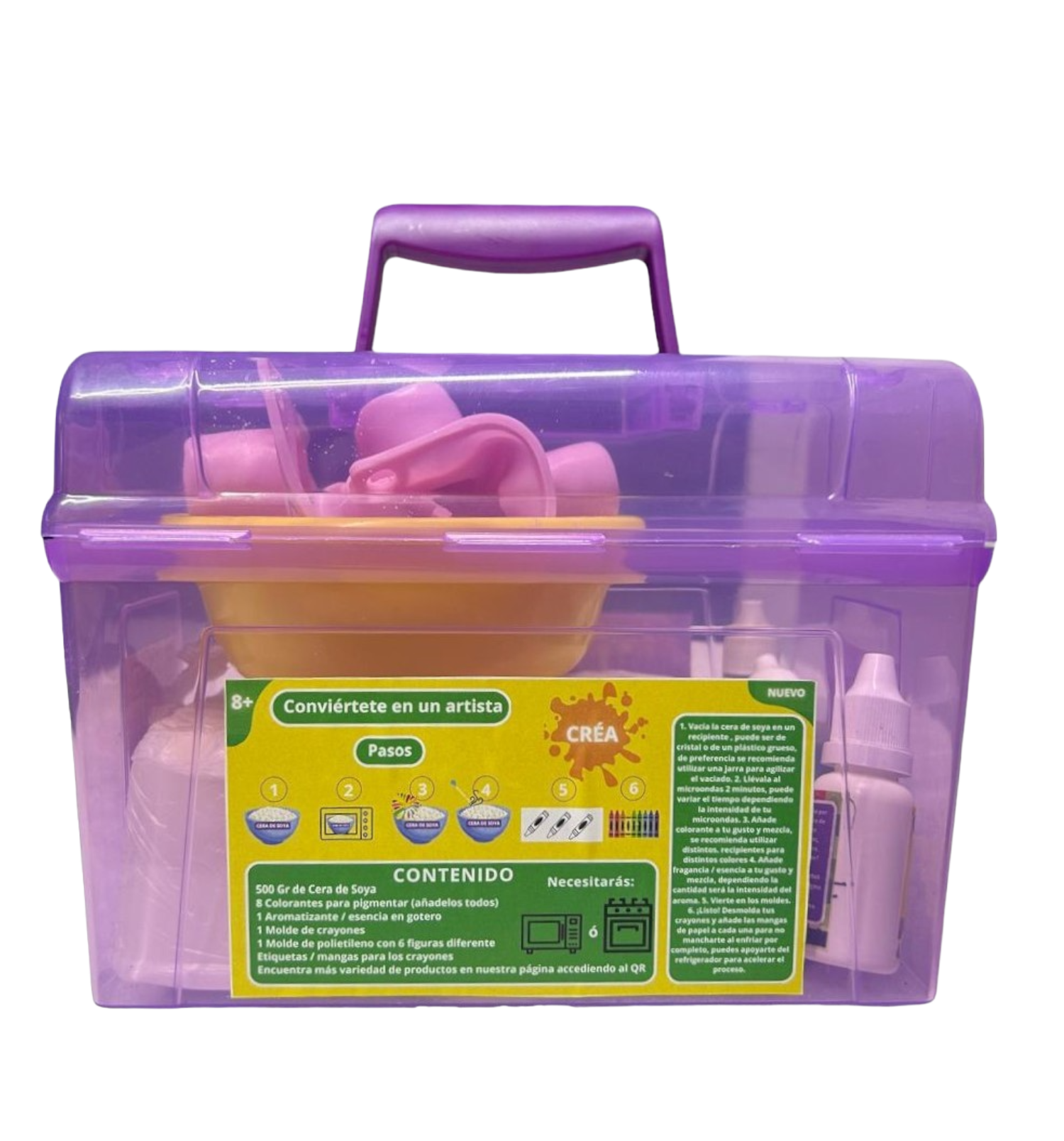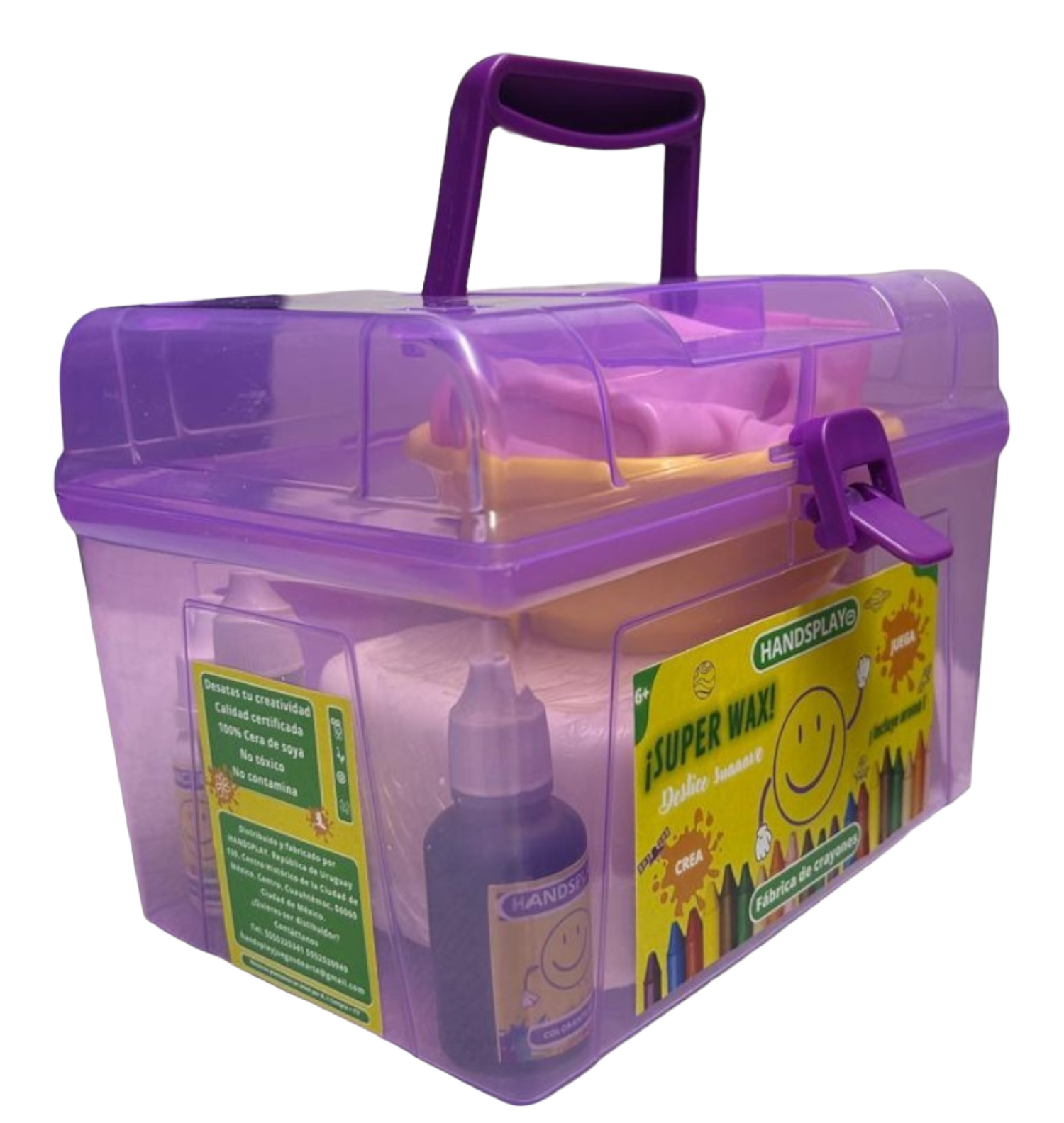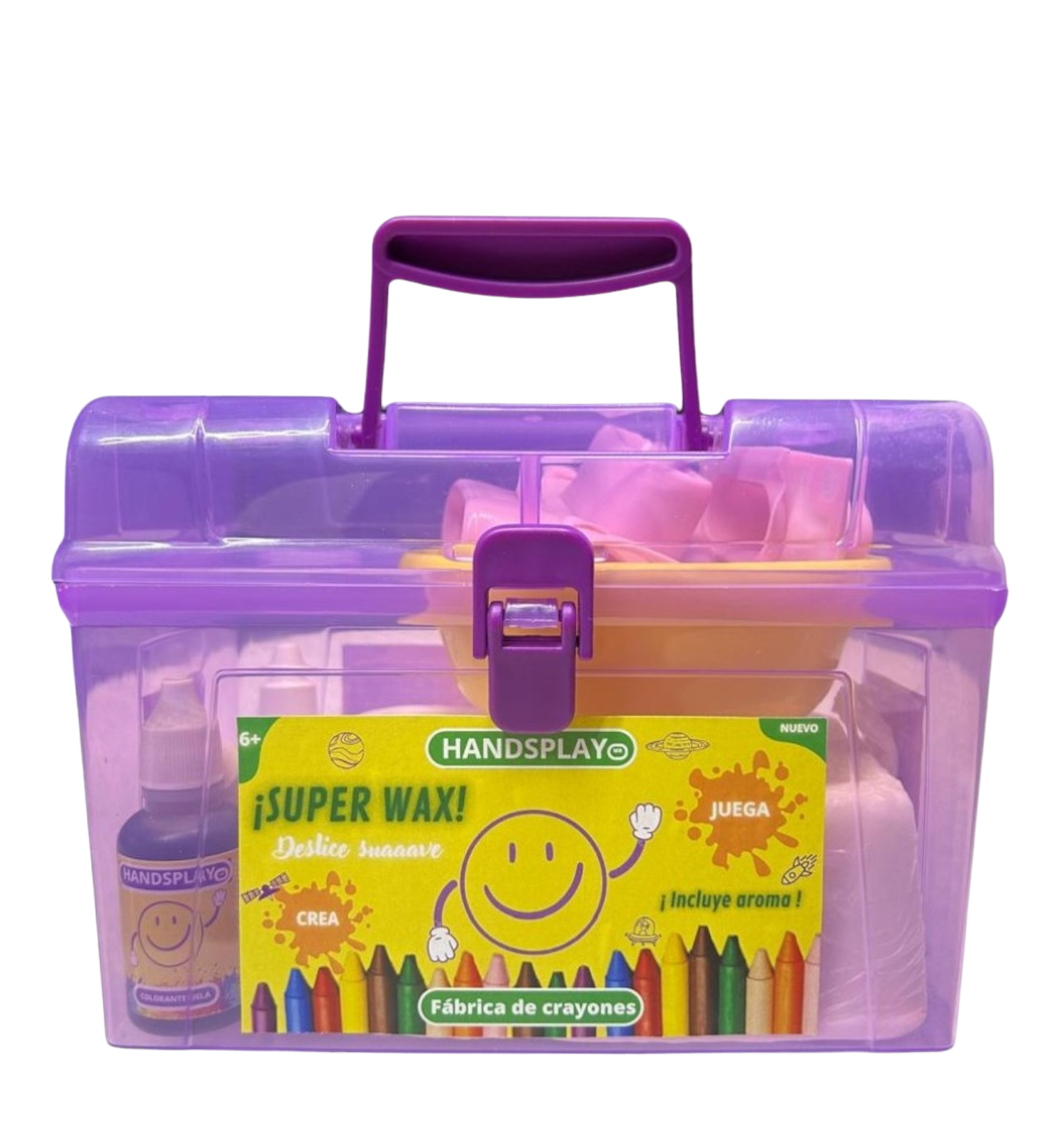 Descubre la diversión de fabricar tus propios crayones con nuestro Kit Creativo. Incluye la materia prima para verter en moldes, agregar colores vibrantes e incluso experimentar con aromas divertidos. ¡Transforma la creatividad en color con nuestro completo kit para fabricar crayones SUPER WAX con delice suaaave y haz que cada obra sea única y emocionante!"