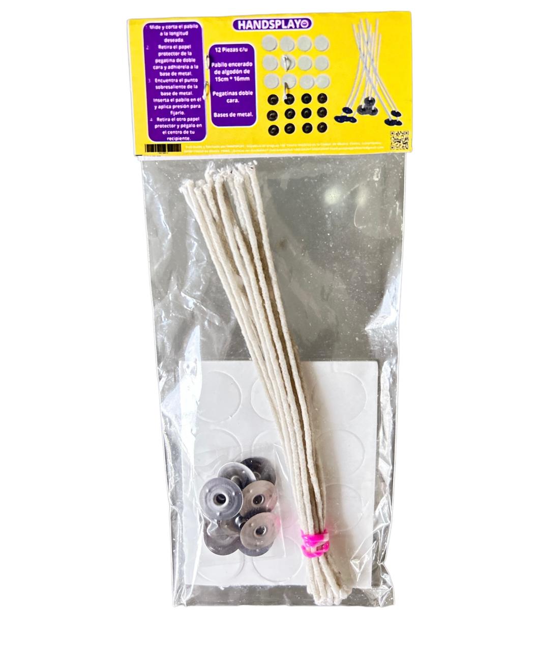Pabilo encerado, porta pabilo base adhesiva; 12 piezas