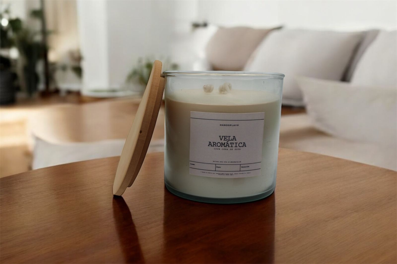 Vela cilíndrica de cristal (300 ml, 3x3 pulgadas, con tapa de corcho sintético)