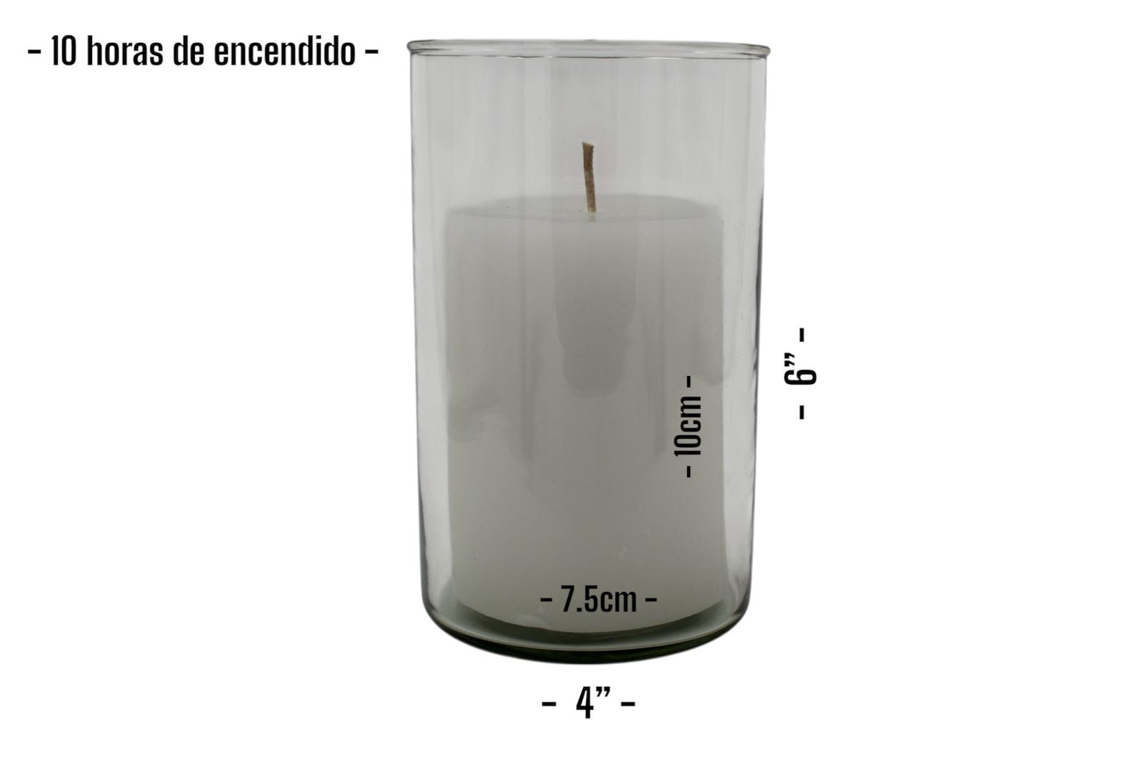 Vela Blanca en Cilindro de Cristal 4x6 pulgadas